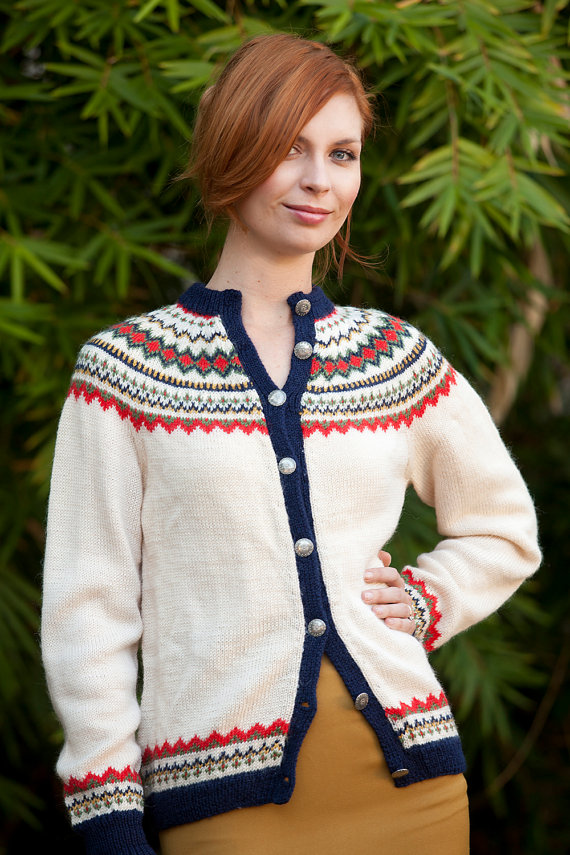 BUY IT NOW! 1960s Fair Isle Cream Cardigan, $45 on Etsy