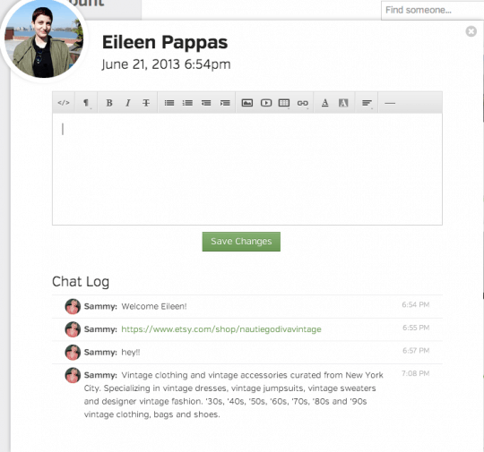 “Hi Sammy, my name is Katie Vincent and I have the little vintage shop called Aligras on Etsy. I was wondering if you could give me a few pointers. I follow you on twitter and you just really have a knack for posting the most interesting things and getting followers. I’m terrible Hahaha! Anyways I was wondering if you had any tips? I really would love for my store and twitter to be successful because I adore vintage items, but I’m an interior designer, not a great sales rep. Any ideas?”