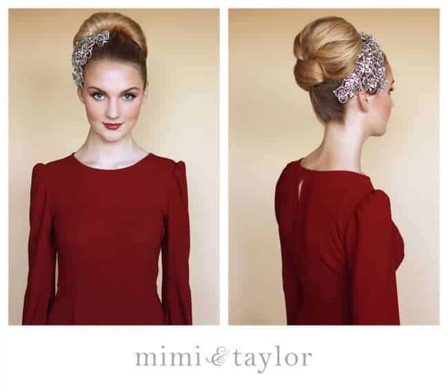 Reminiscent of Audrey Hepburn’s hairstyle in Breakfast at Tiffany’s, the high chignon has been making a comeback in both high fashion and casual street style. Perfect to be paired a fancy 60s-inspired outfit, you can accessorized this vintage updo wedding hairstyle with elaborate headbands and hair chains. Mimi & Taylor has this tutorial.