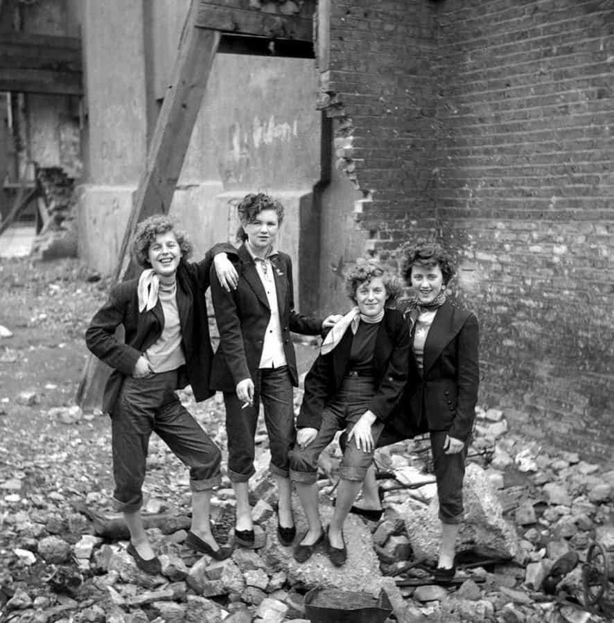 The 1940s were a hub of definitive fashion. During World War II, style arose from how people wanted to show their support for the troops. This meant style reflected industrial support. We saw the dawn of the “Liberty Roll” hairstyle. Rosie the Riveter had her bandana tied up. Women began working in male-dominated workplaces. Because of this, we saw the rise of worker wear as street style. Overalls began to take center stage as a functional, bold denim look.