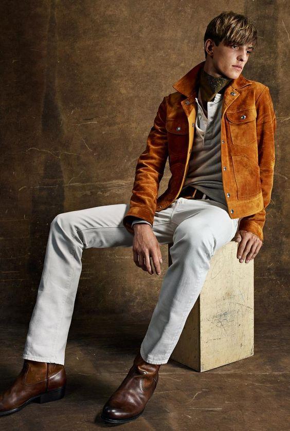 Americana is nothing without solid jackets. The camel suede jacket is undeniably western. Add some fringe and you’re rocking a full-on California cowboy look from the mid-century. When paired with dark wash jeans and and a black shirt, this look can be very sexy. Opt for lighter wash jeans and some boots for a casual look. Sheepskin accents can add to the cowboy appeal.