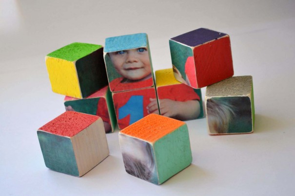 A puzzle made out of blocks is a great gift for a child! When you plan this project out, you will want to put the blocks that you’d like to use into formation (consider making a square out of nine blocks). Measure the edges. Next, enlarge a photograph to that exact size, and print it out. Again make measurements, and cut the photograph into the appropriate square sections. Glue one square of the photograph to one face of each block. This would be a great gift for a child in your life!