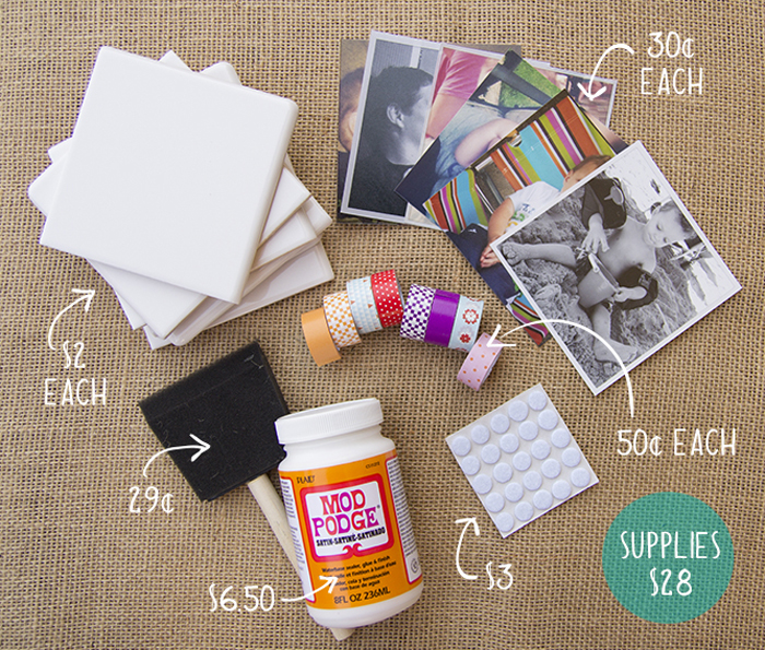 For this project you will need ceramic tiles to start out with. You will also need small felt discs to attach to the bottom of the tile, so that your coasters don’t scratch the surface they are set on. If you can’t find blank white tiles, consider using second hand ones but painting them the color that you want. This might take a few coats of paint, so be patient! And if you can not find small felt circles with adhesive backing, simply cut your own out of felt and glue them onto the tile.