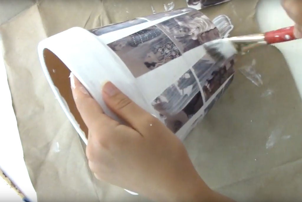 If you have houseplants on display, maybe you could add photographs to the planters. This would be an easy way to get to enjoy your photographs regularly. Clean and dry the planter. Paint the surface (optional) and then use a decoupage method to paste photographs onto the surface. Tip: Small photographs work best. If the photo is too large, it will not adhere smoothly to the pot, which is likely smaller at the base than at the top.