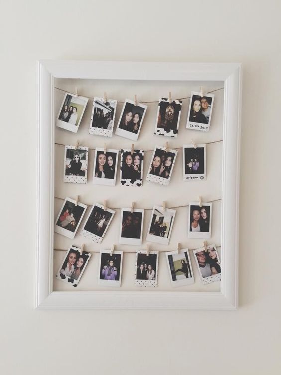Picture frames are common thrift store items that can be purchased really cheaply (think one or two bucks). Yes, the frame might come with a tacky picture or photo of someone you don’t know, but that’s easy to fix. Simply take out the unwanted artwork or photo. Also remove the back of the frame. Paint it a pretty color, and hang string across it. Use clips to attach your photos to the strings.
