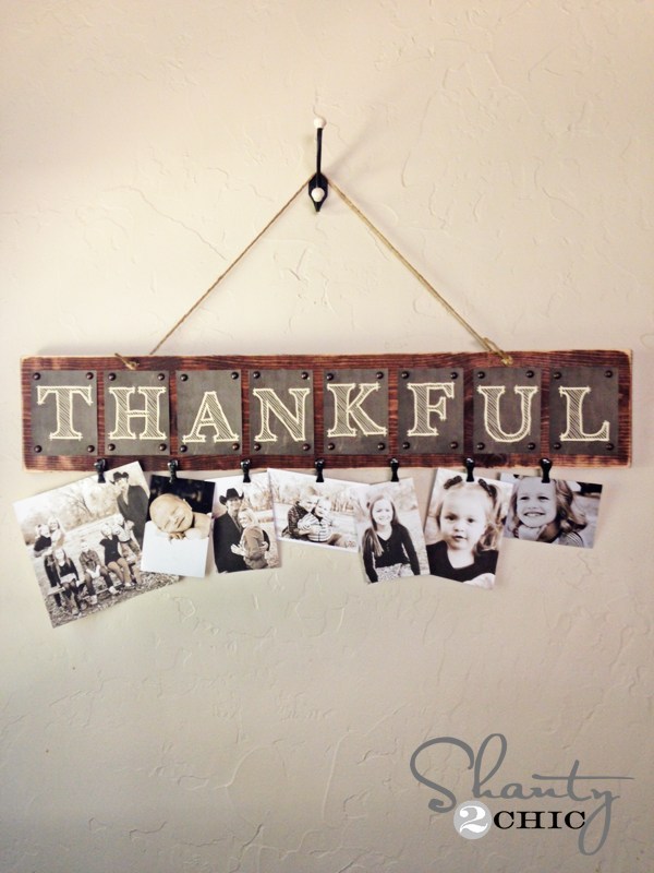What are you thankful for? Many of us are thankful for our friends and family. What better way to remind yourself of these precious people than to put up a photo display? Glue, pin, or nail the lettering for “thankful” onto a long board. Fasten your pictures to the bottom.