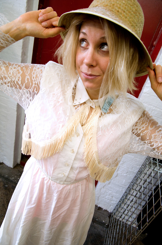 Thanks so much Megan! ;-) That piece was an ’80s garment of Western inspired wear … meant to be worn by DAY! Not as a costume!!! I think that if you cut the skirt/dress part away from lace top and wore that as a jacket or shirt with high-waisted cut-offs, you’d be looking pretty fly!