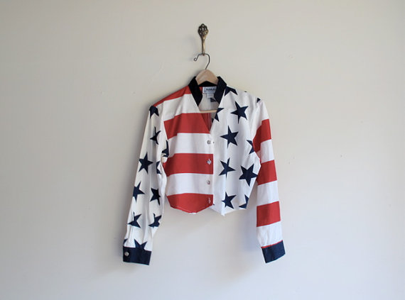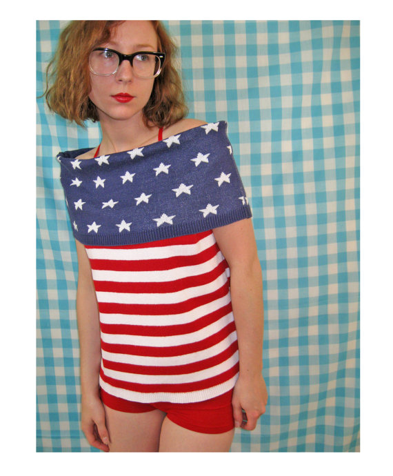 But whatever the reason for this holiday limbo I’m experiencing, I’m certainly not experiencing a lack of style inspiration from the day. No ma’am! I just spent the past hour lusting over the selection of patriotic apparel available on Etsy, wishing I had thought to research sooner so I could buy the perfect stars & stripes vintage piece to wear [somewhere?!] tonight!
