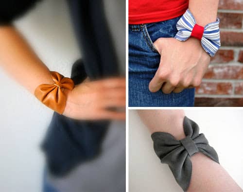 Pretty bow bracelets can be made with scraps of leather, suede, striped ribbon, or any other stiff and sturdy vintage fabric that you come across!