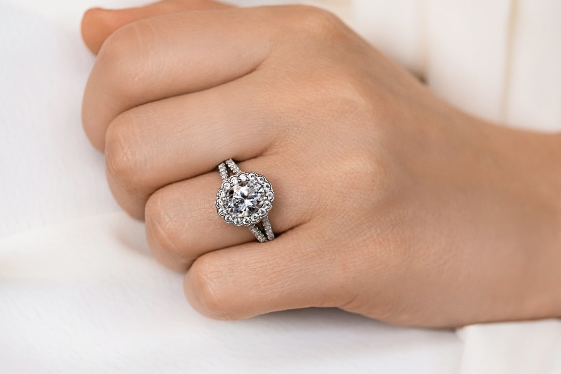 The natural recycled diamonds accent goes further to make this ring bear a unique design, which is perfect for someone who prefers a vintage look on their ring. It’s a perfect vintage engagement ring for a modern bride with an active lifestyle. This attractive vintage engagement ring has a starting price of $941 for setting only.