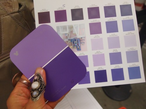 Thanks to Peter’s advice, we gladly took home a sample can of each “electric violet” color — one from Martha Stewart, and the other from my personal fav: Disney!