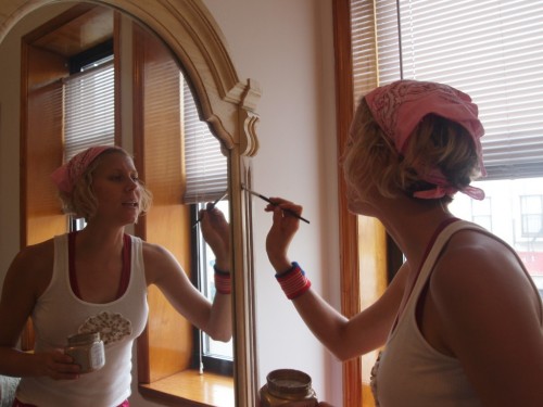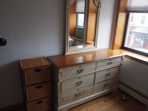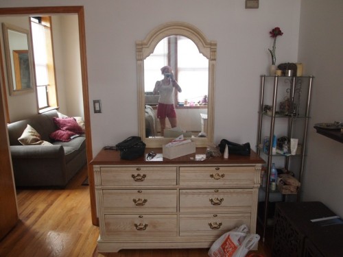 We thrifted a beautiful oak dresser from the Hell’s Kitchen Salvation Army, and this past weekend was spent visiting Home Depot, finishing & painting the dresser and beginning to shape order in Sabrina’s stylish Brooklyn abode.
