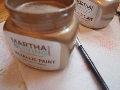 Peter had the excellent suggestion of adding some modern day touches to the dresser’s mirror by using a mix of metallic paint & glaze by Martha Stewart Living.