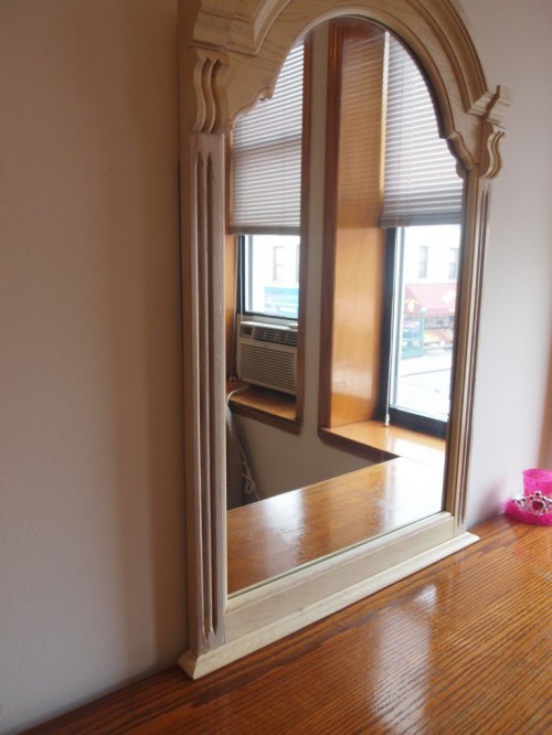 I ended up painting the entire mirror! I unfortunately forgot to grab a final, FINAL picture — but here you can see the difference between the painted sides and the raw bottom.