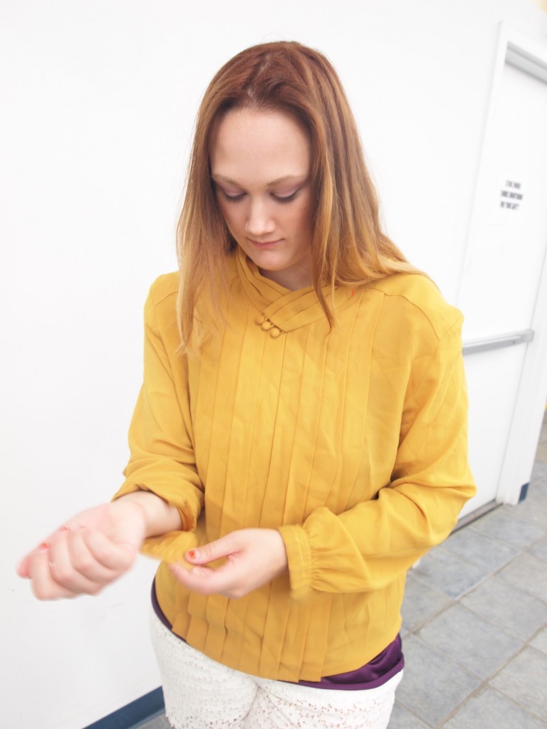 3 / The perfect mustard secretary top — with PLEATS!