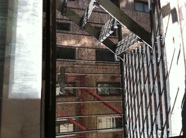 A few weeks ago I took out the air conditioning unit in my window of my Manhattan apartment. The air unit spilled out into my fire escape, so when I removed it I was given a view of the fire escape and obviously, the apartment building next to mine!