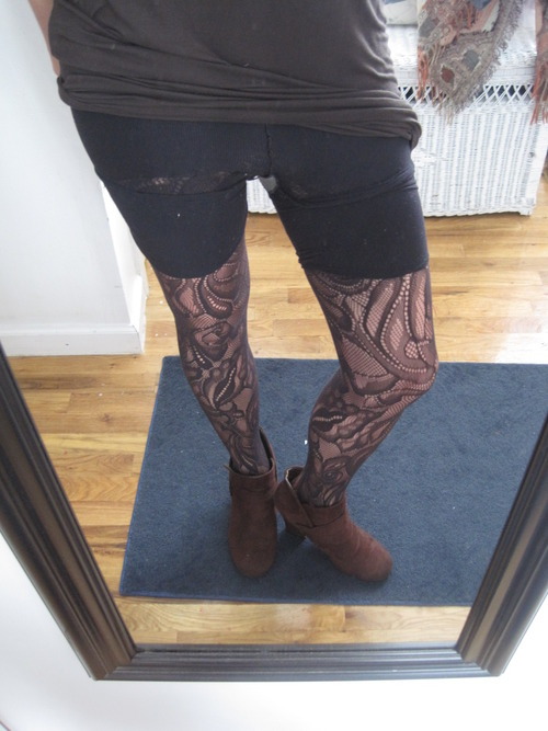 There they are in, in all of their glory! Note how they are actually rolled up [no idea why I’d need them to knees] and are slightly see-through at the top. Ugh, cheap Target rip-off.
