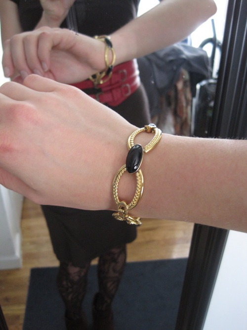 Great detail on this bracelet — and it doesn’t jangle and make obnoxious noise like a lot of my other 80s black/gold bangles do.