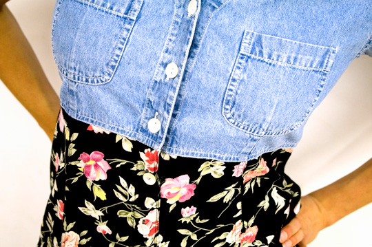 1990s fashion has a style all its own that with due time, will surely have its place in the canon of fashion history. According to industry standards vintage style is anything officially 20 years or older, so only a piece produced between 1990 and 1992 is technically vintage for 2012. So depending on your personal opinion and vantage point to the era, the ’90s is a toss-up for vintage classification. A girl who grew up in the ’90s may prefer to avoid the ’90s fashion trends of her childhood and prefer wearing ’50s, ’60s , and ’70s clothing, while a teenager today may find the styles of the ’90s vintage simply because she can’t remember ever having experienced them before. Since I grew up in this easy era and can remember most of the trends firsthand, I decided to thrift my favorite ’90s styles for a fun trip down memory lane at my hometown Salvation Army in Lancaster, Pennsylvania. To share the history of ’90s fashion trends, I combed the racks for the era’s most memorable pieces from cutesy denim overalls, printed shorts and crush-worthy velvet mini dresses to the era’s most quintessential prints like sunflowers, daisies, ditzy floral and preppy plaid.