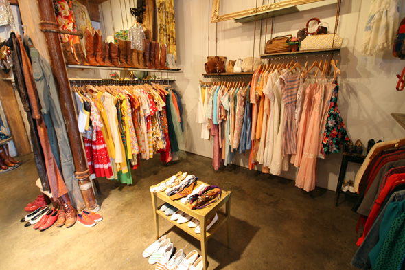 The 3,000 square foot store doesn’t just have clothing — but housewares, furniture and bric-a-brac, too. A new trend that I’m noticing in the vintage boutique world is mixing new designs with vintage, so that customers can mix and match for a modern look. Bungalow is part of this rising trend, selling new fashions at the front of the store for inspiration on how to style with a (according to reviews, insanely affordable if not bordering on cheap) selection of vintage in the back.
